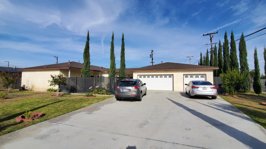Briefly, 7461 Bock Ave. is a single family unit apartment in a duplex single family house in the residential neighborhood of Stanton. To repeat, this is one of two units in a duplex building. It shares the building and driveway but has separate addresses, entrances, and garages.